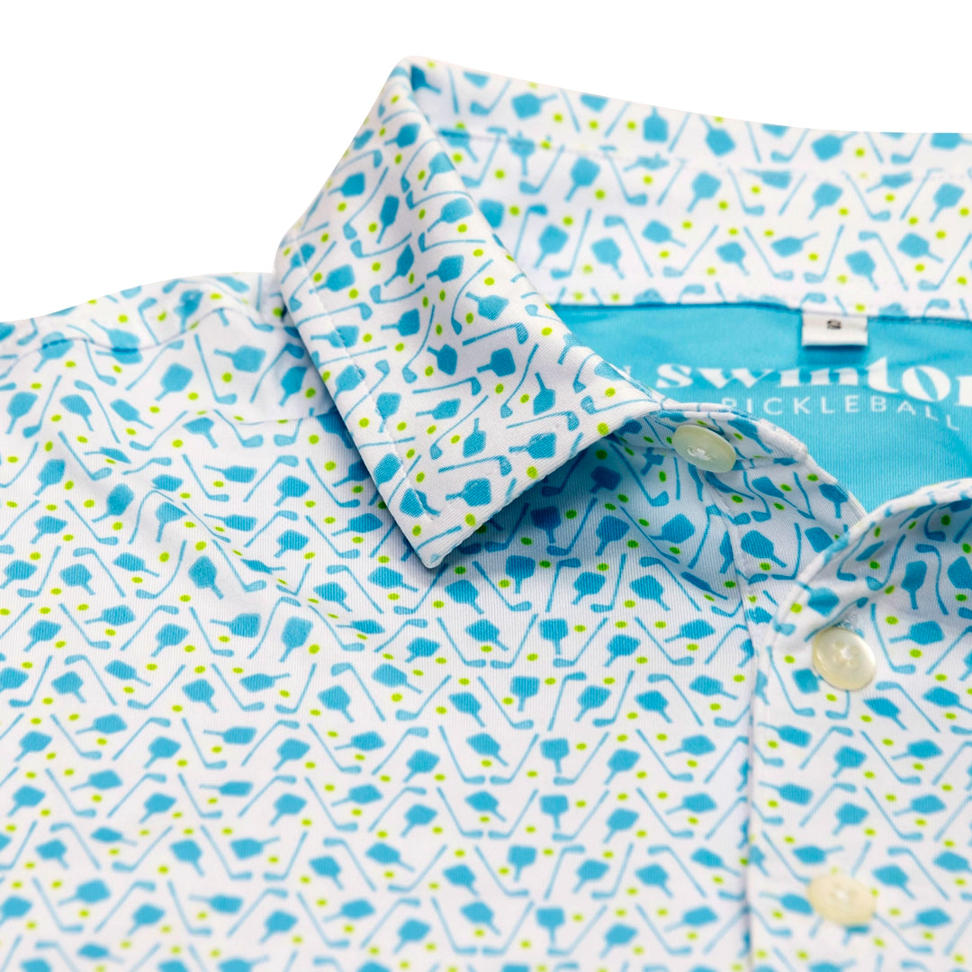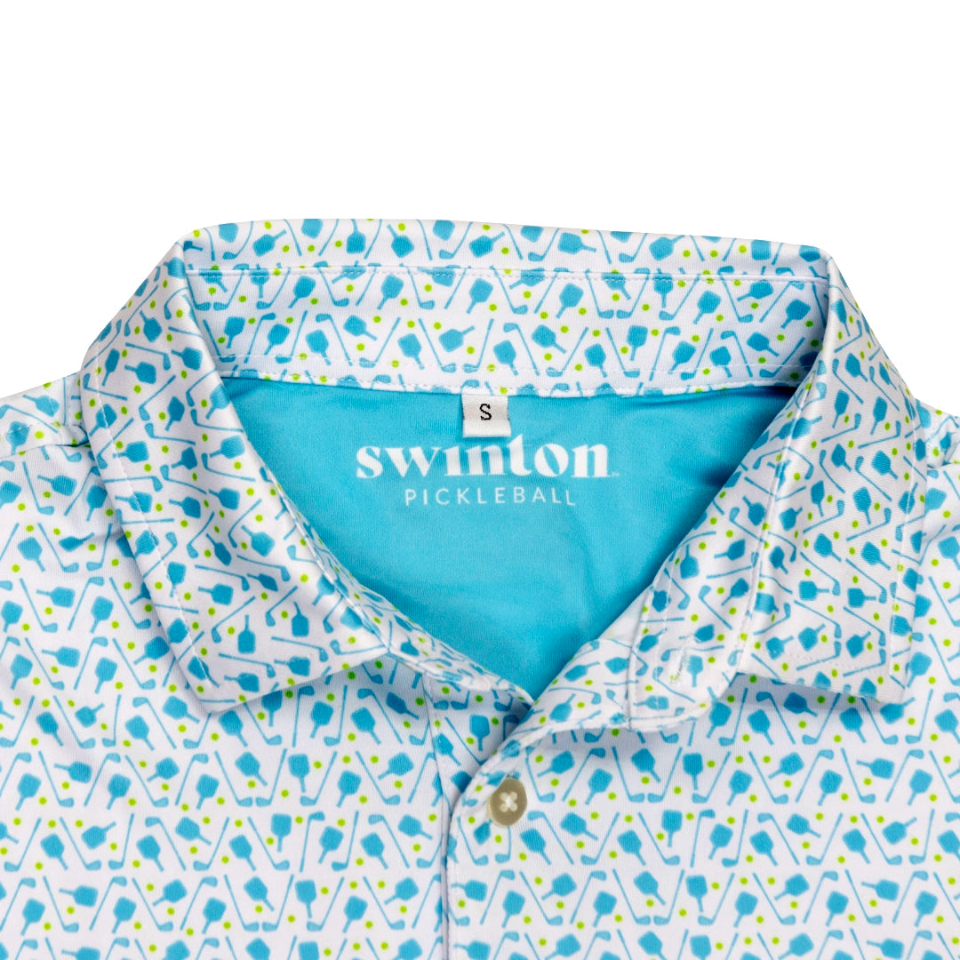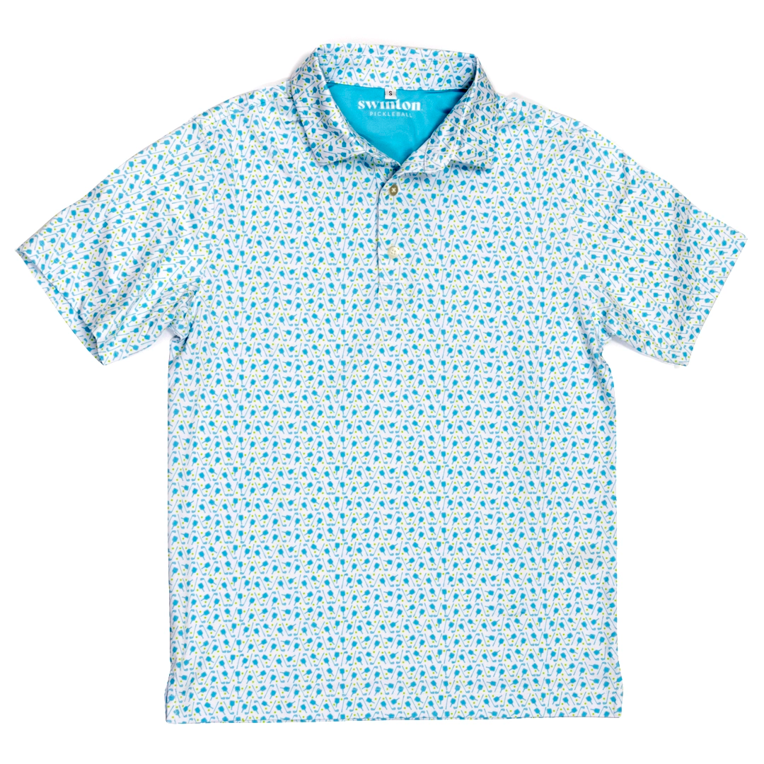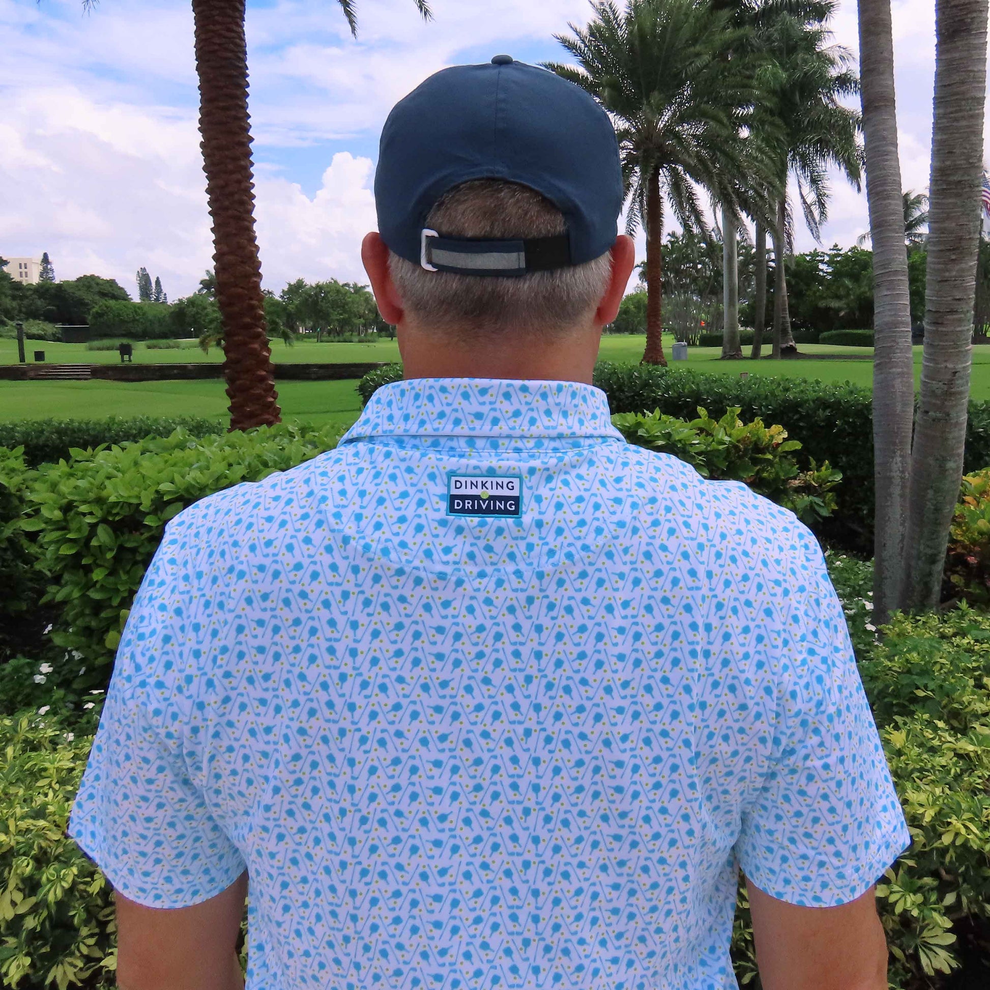 Hit the golf course or the pickleball court in our latest men's performance polo design. The material wicks sweat and comes in a stand-out golf and pickleball pattern.