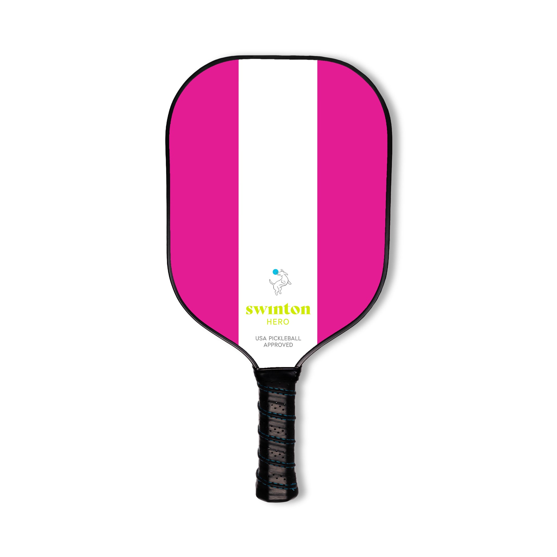 USA Pickleball Approved Swinton Hero model has a high end graphite technology and polypropylene core, it is both well-balanced and lightweight for optimum ball control. Newbies and advanced players will enjoy the power and precision of the Swinton paddle. The durable graphite face strikes the perfect balance between durability and strength. Plus, the premium plush grip is extremely comfortable and perforated to dissipate sweat, allowing for hours of play. All paddles include the protective neoprene cover.